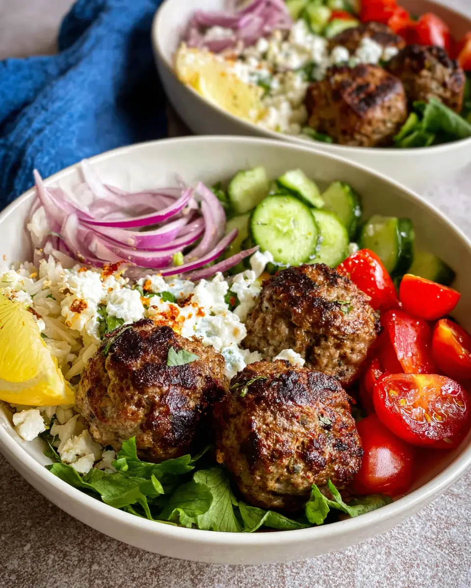 Elevate your air fryer Greek meatball bowls experience with some creativity! Try serving: