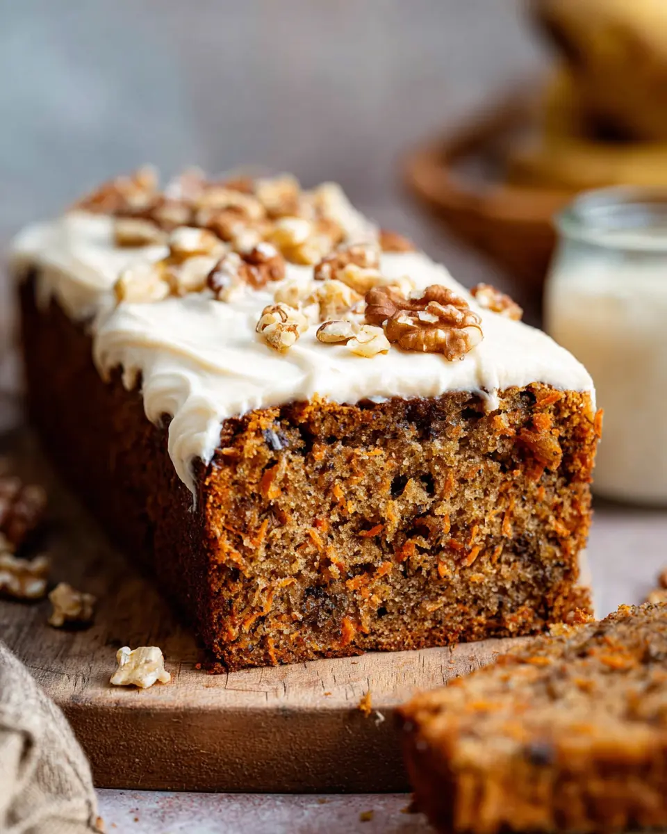 For a delicious vegan version, simply replace eggs with flaxseed meal or chia seeds mixed with water. Use a plant-based oil instead of coconut oil, and opt for almond or soy yogurt instead of cream cheese for your frosting. The result? A moist and flavorful carrot cake banana bread that everyone will adore! For more vegan baking tips, check out Minimalist Baker.