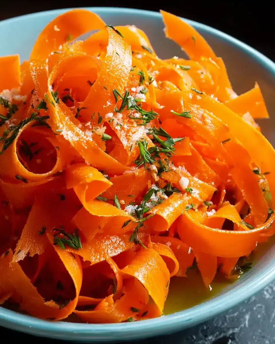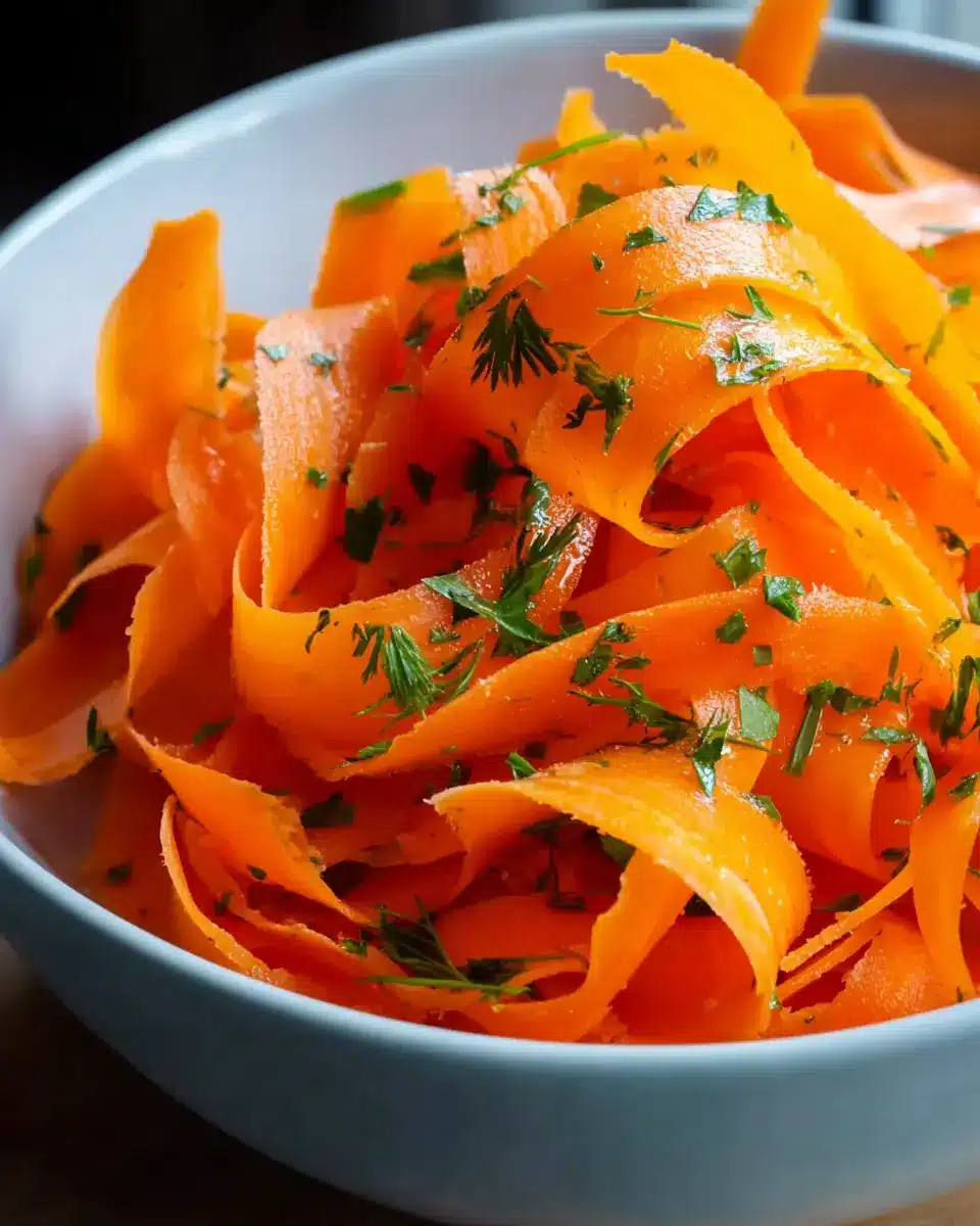 - Dress the Salad: Pour the vinaigrette over your carrot ribbons.