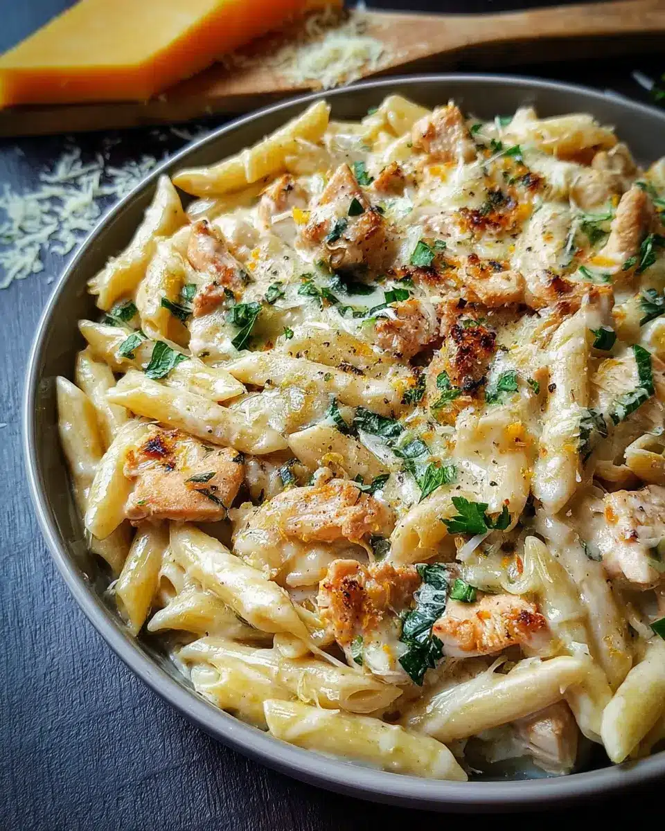 Delightfully rich and satisfying, cheesy chicken pasta is the perfect meal for busy weeknights or cozy gatherings. With effortless preparation and a comforting flavor profile, this dish is sure to please everyone at the table. So why not whip up this creamy delight for your next dinner? Enjoy!