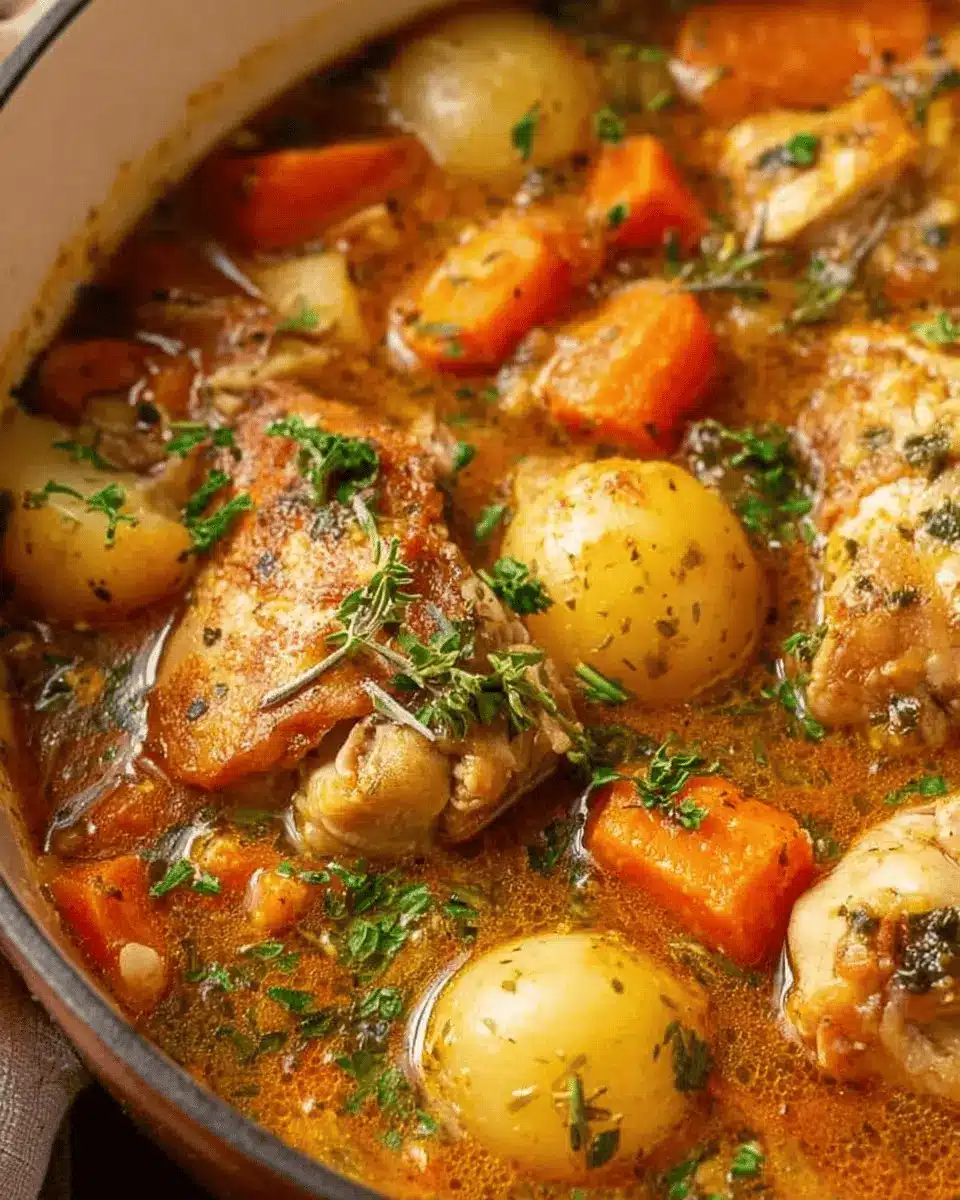 If you’re looking for alternatives to chicken thighs, boneless, skinless chicken breasts work great! They may cook a bit quicker, so be sure to adjust your cooking time accordingly. Another option is to use turkey thighs for a delicious twist. For a vegetarian version, you could substitute chickpeas or a hearty sort of mushroom to maintain that comforting texture.