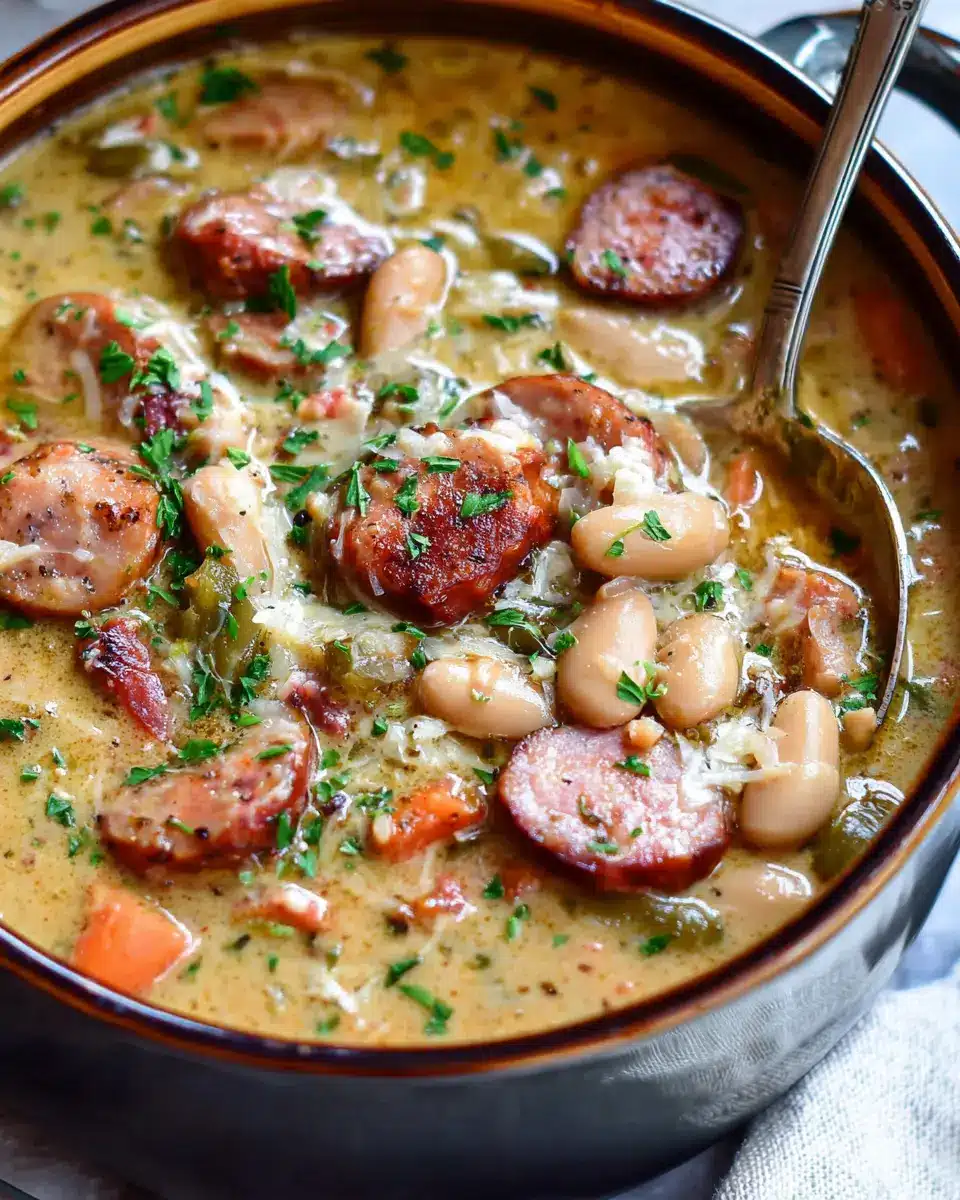 Before diving into the culinary adventure, it’s essential to gather all your ingredients. This not only makes the cooking process smoother but also helps keep your kitchen organized. For this hearty Creamy Sausage and Bean Soup, you’ll need: