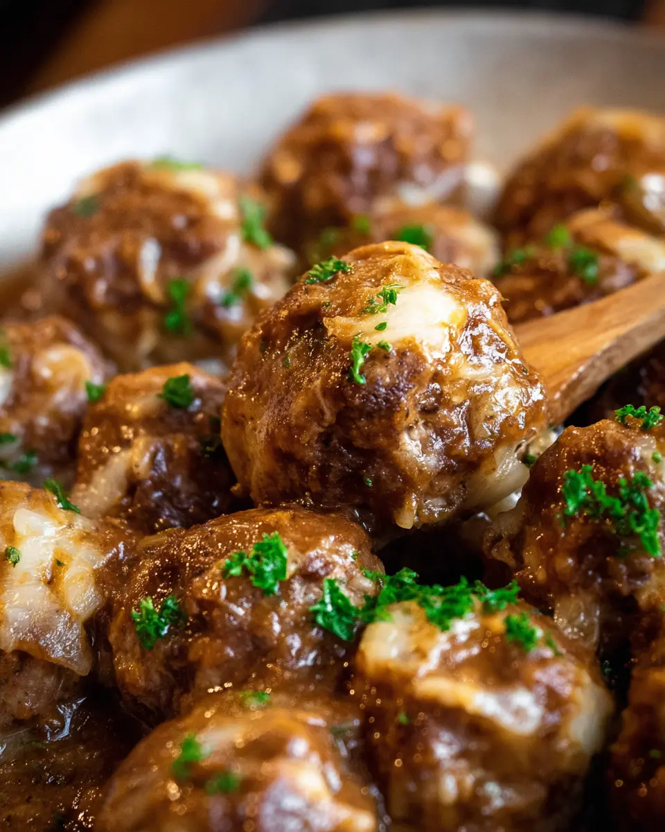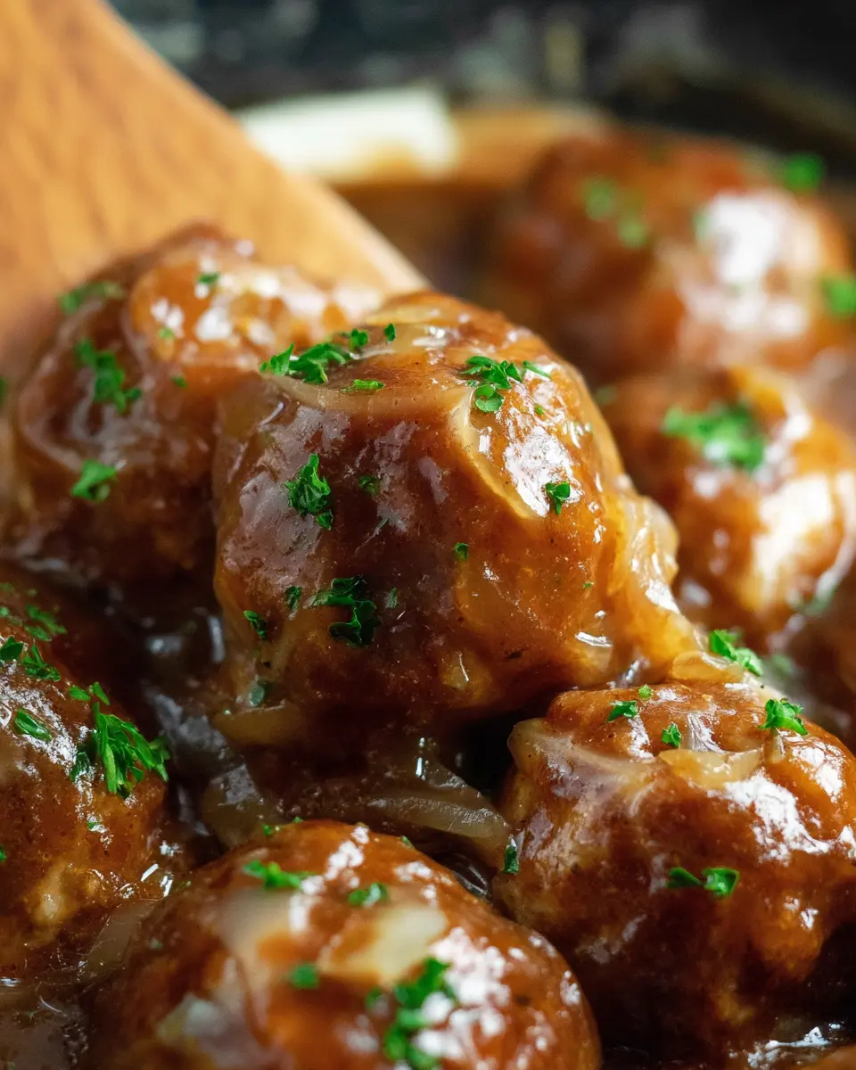Serve these delectable Crock Pot French Onion Meatballs over rice, pasta, or even on their own as an appetizer. You’ll find them impossible to resist! Enjoy your cooking adventure!