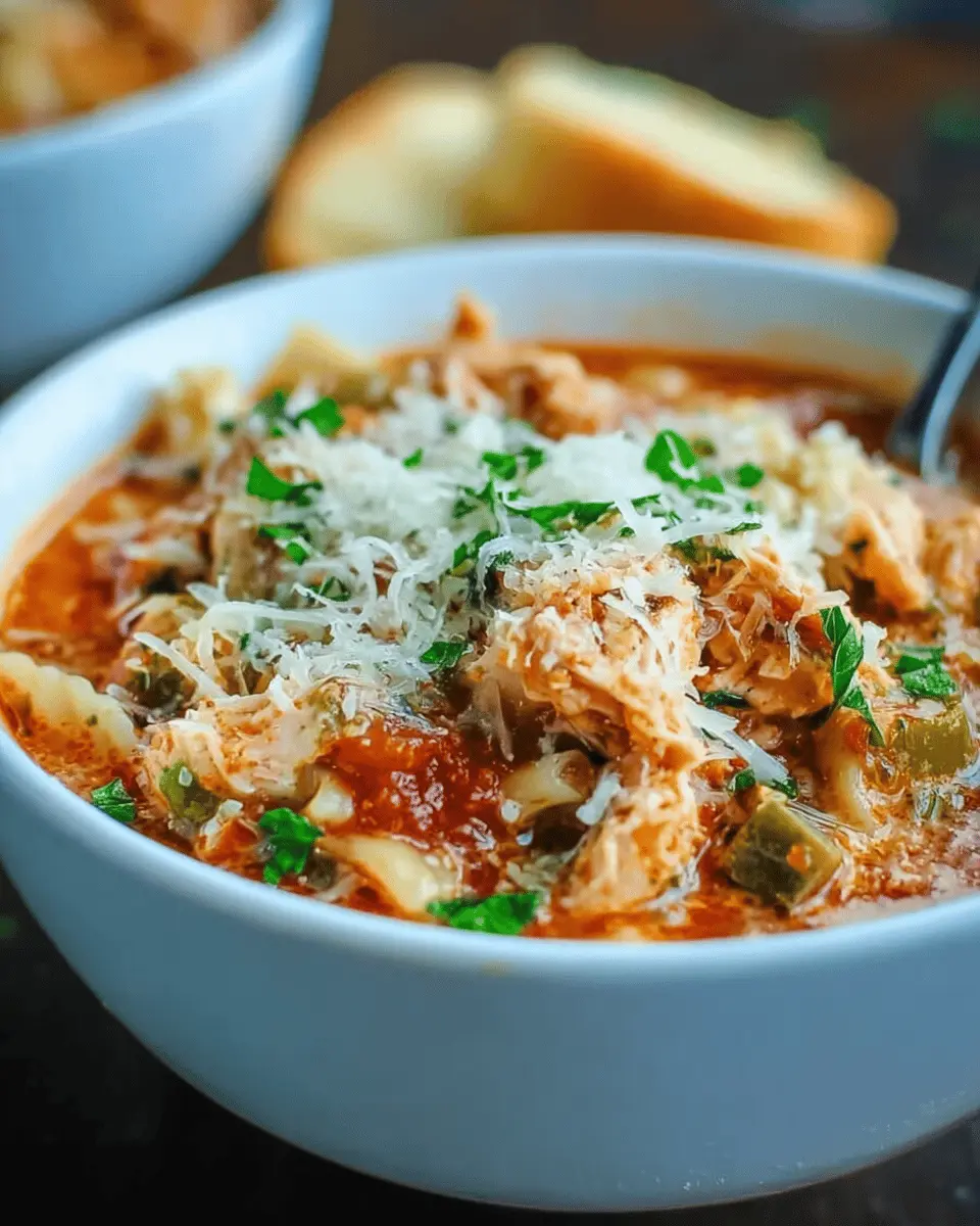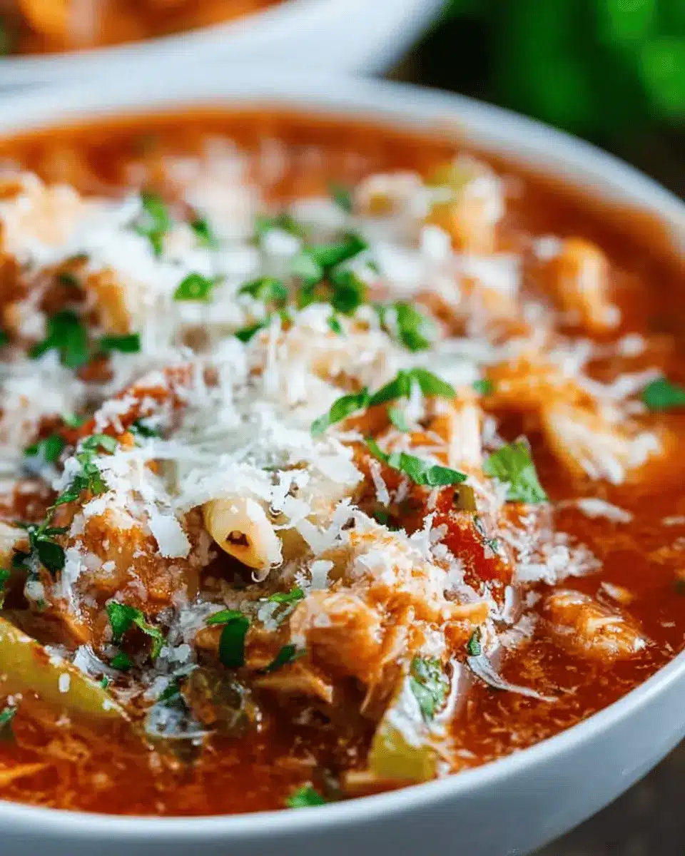 Finally, it’s time to serve! Ladle the Crockpot Chicken Parmesan Soup into bowls and sprinkle with extra Parmesan cheese and freshly chopped basil or parsley. This finishing touch elevates your dish, adding a burst of color and flavor that’s simply irresistible.