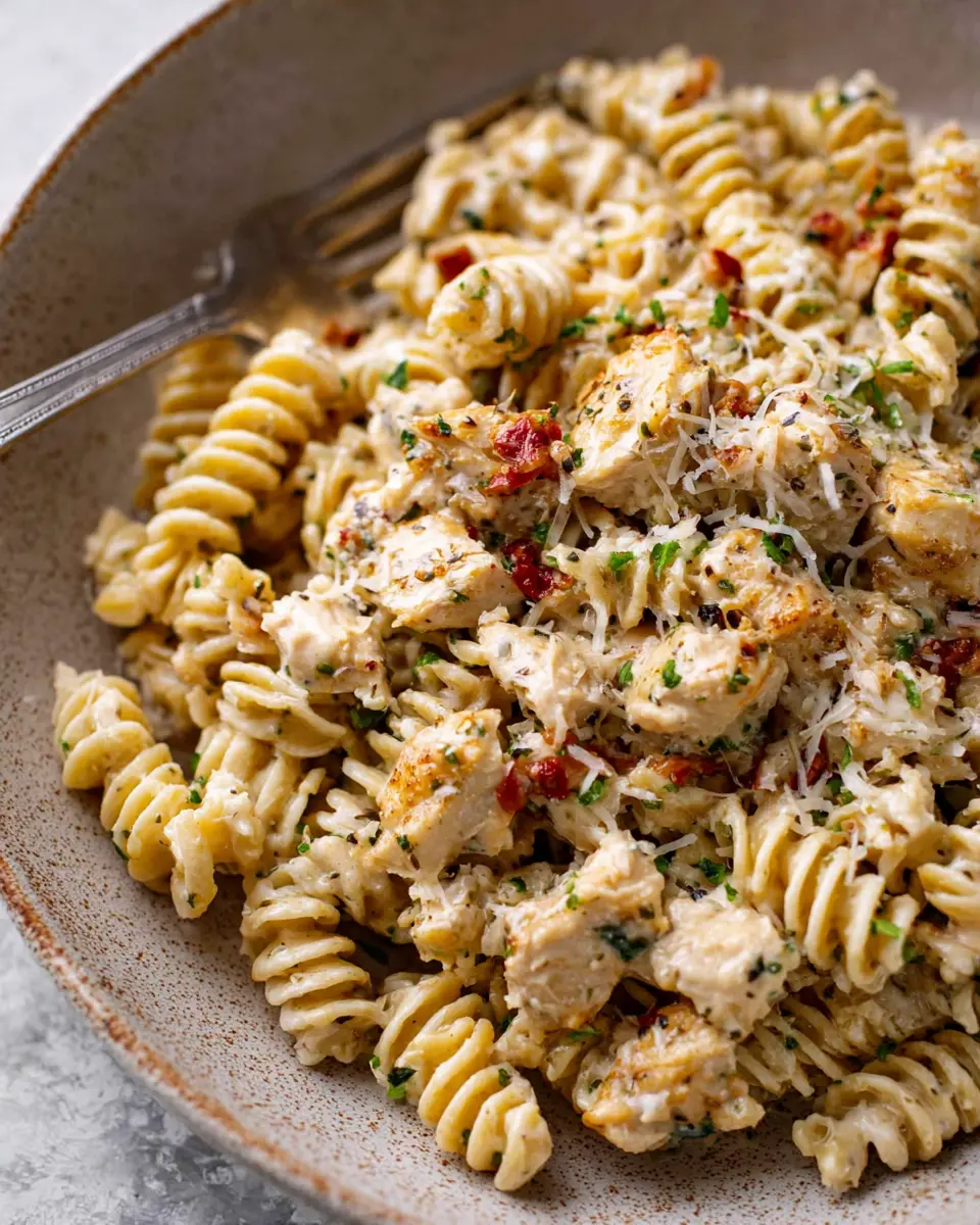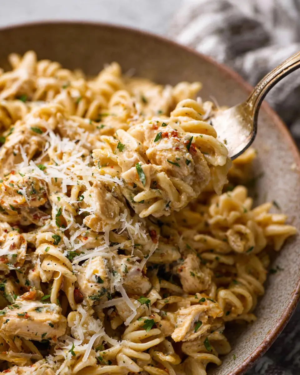 Presentation is key when it comes to elevating your dish. Serve your Crockpot Parmesan Garlic Chicken Pasta in a large bowl, and garnish generously with freshly chopped parsley to add a pop of color. A sprinkle of red pepper flakes adds not only visual appeal but also a hint of heat. For an extra touch, consider using a parmesan cheese grater at the table, allowing guests to help themselves to freshly grated cheese just before serving.