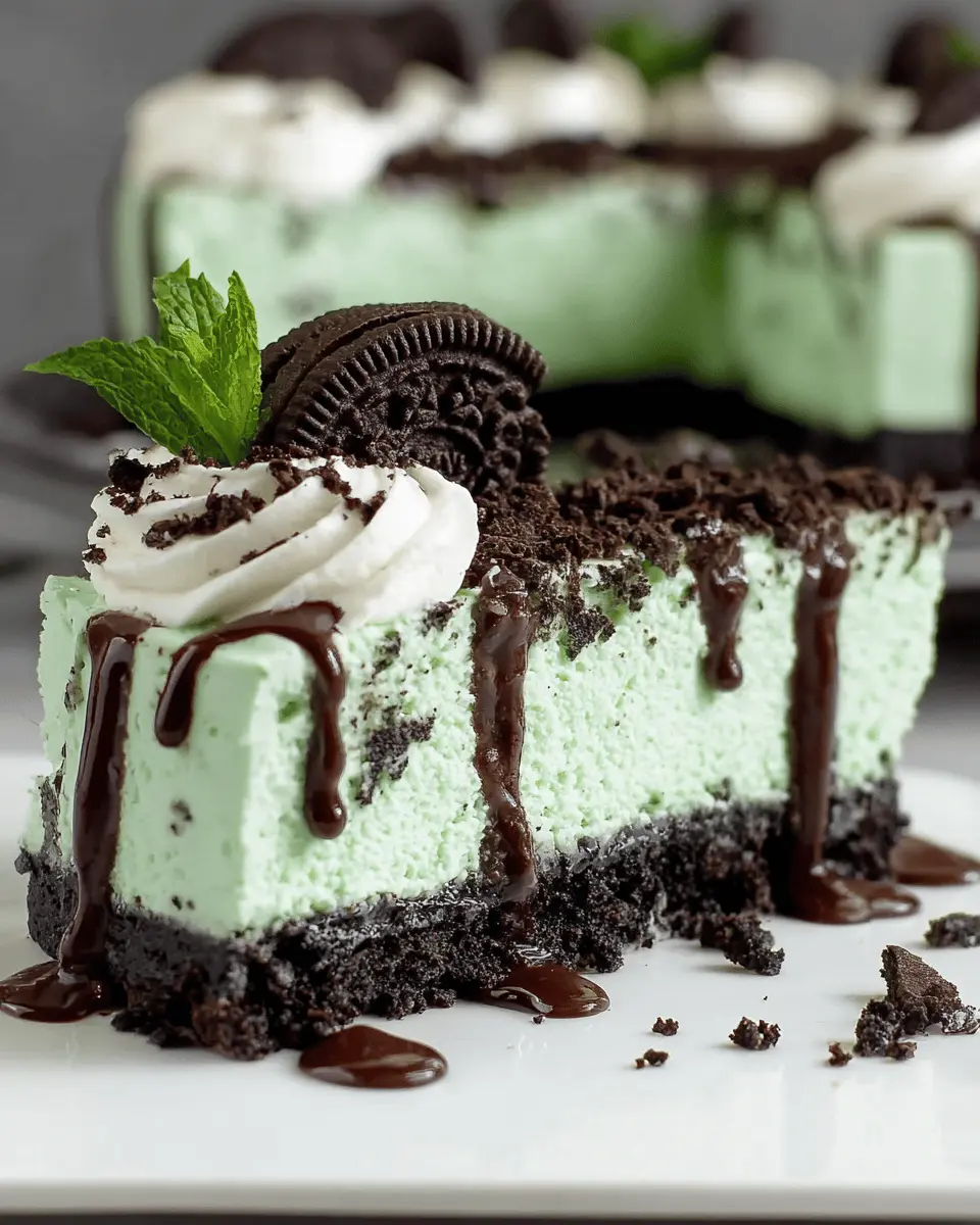 This easy no bake Oreo mint cheesecake is a delightful end to any meal, combining refreshing mint with decadent chocolate flavors. Perfect for parties or casual gatherings, it's a dessert that impresses without making you sweat in the kitchen. Give it a try and enjoy every creamy bite!