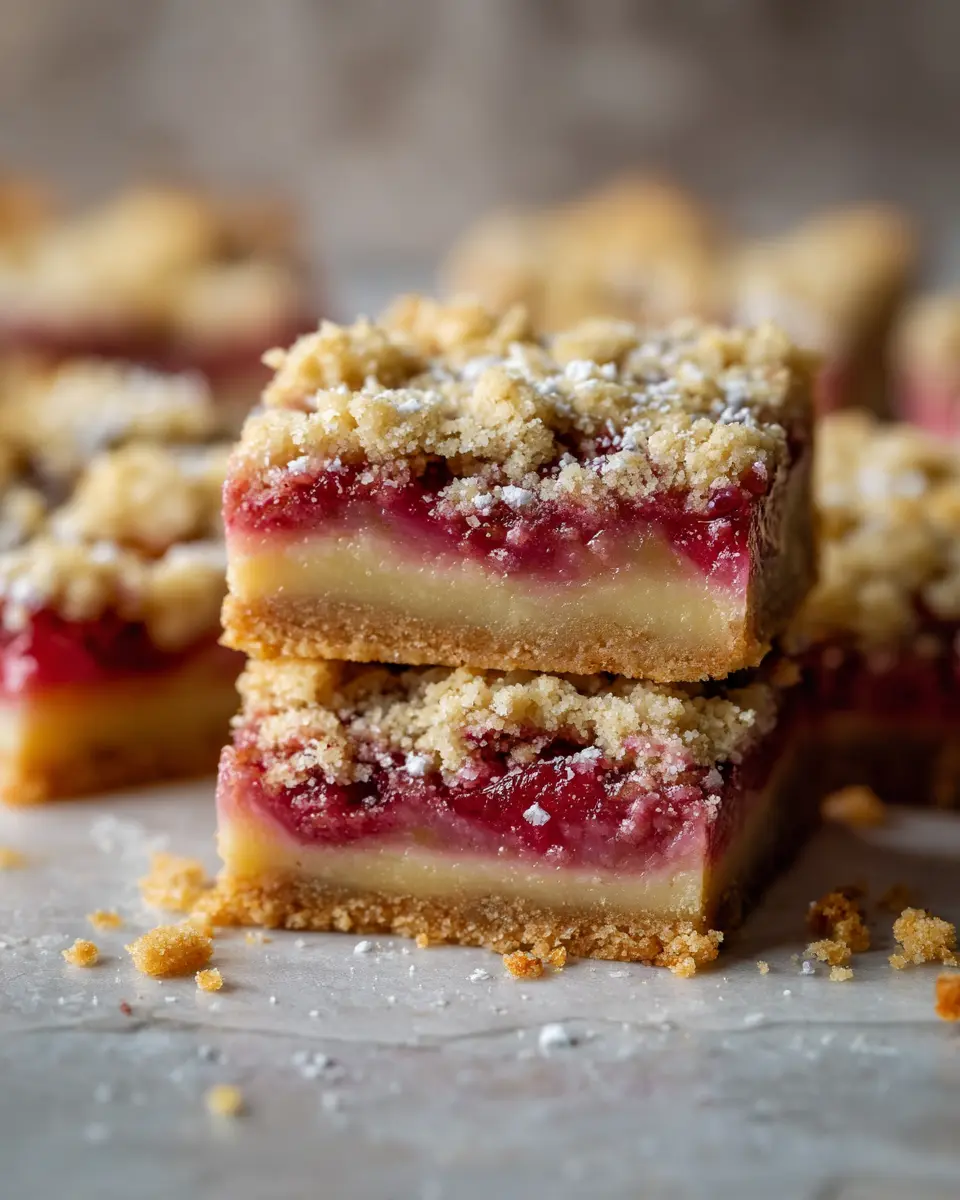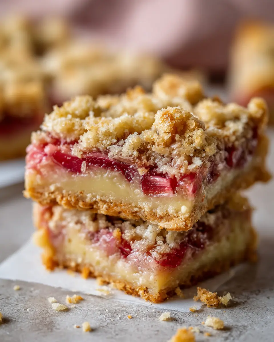 These bars shine at gatherings! Pair them with hot beverages like chamomile tea or a rich cappuccino for a relaxing afternoon. You can also serve them alongside fresh fruit such as strawberries or raspberries for a refreshing touch. If you're looking for a heartier option, accompany your dessert with a light cheese platter featuring a mild cheese like brie or gouda—perfect for balancing the tartness of rhubarb. Check out BBC Good Food for more serving ideas!