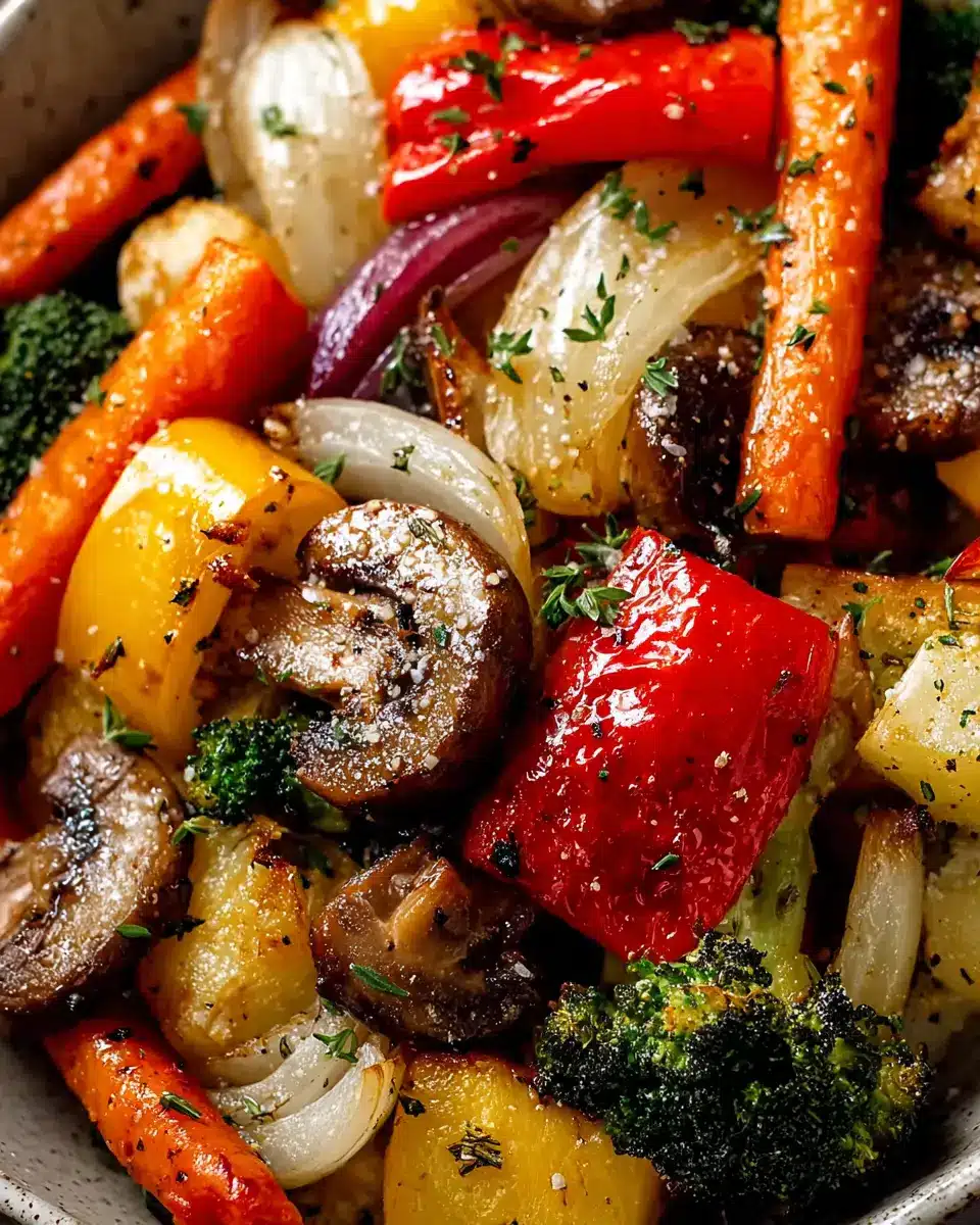 Leftover easy roasted mixed vegetables can be stored in an airtight container in the fridge for up to 3 days. Reheat them in the oven or a skillet to retain their texture. If you want to get creative, toss them into salads, pastas, or frittatas for a delicious second act!