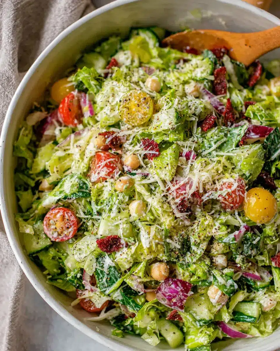Chopped salads are fantastic for a number of reasons. Firstly, the uniform cut of the ingredients not only looks impressive but also ensures every bite is bursting with flavor. This salad features a delightful mix of textures, from crunchy lettuces to creamy cheese, making each mouthful enjoyable. Plus, they're incredibly straightforward to make, meaning less time in the kitchen and more time to enjoy with friends.