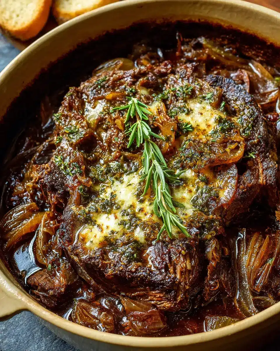 In summary, this French Onion Pot Roast is a delightful dish that combines rich flavors with tender meat, making it a perfect choice for gatherings or cozy dinners. Pair it with toasted baguette slices for a satisfying meal that leaves everyone asking for seconds! Enjoy your cooking adventure!