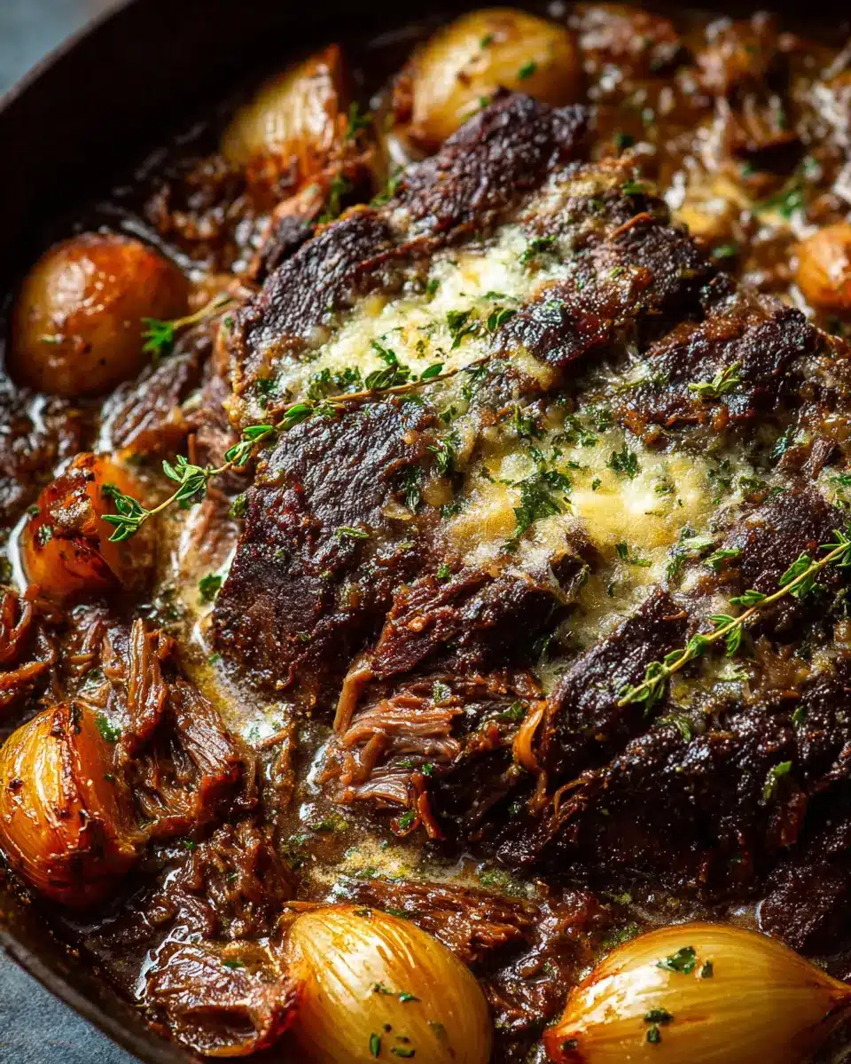 With these steps, your French Onion Pot Roast will be a heartwarming dish that pairs perfectly with your favorite sides. Enjoy it with toasted baguette slices for a complete meal that will impress your friends and family alike.
