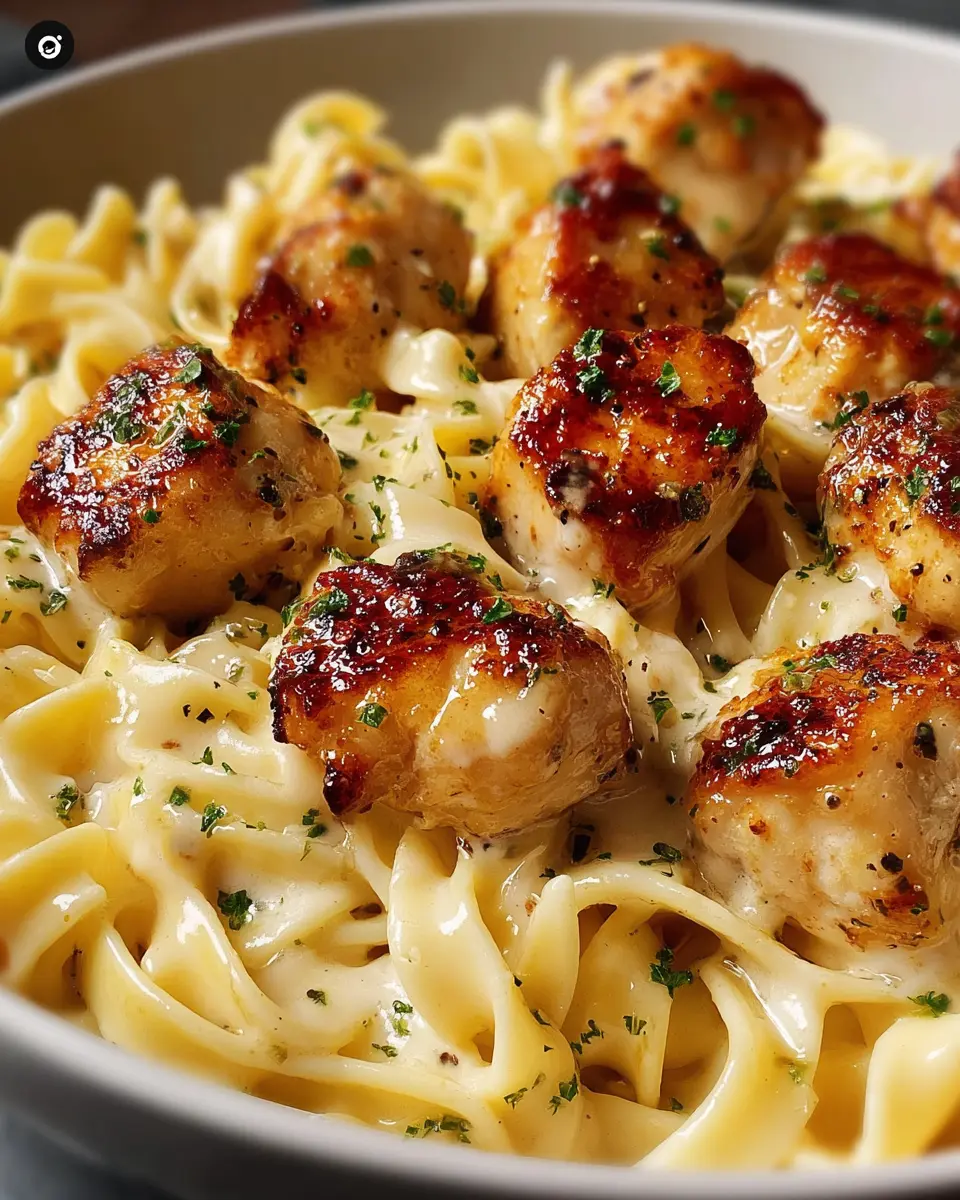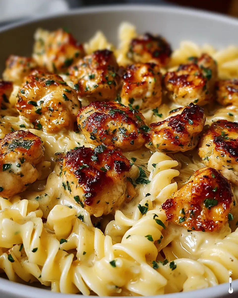 Garlic Butter Chicken Bites with Creamy Parmesan Pasta