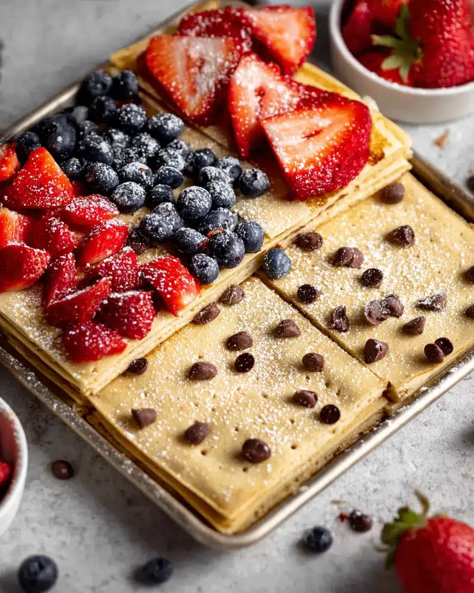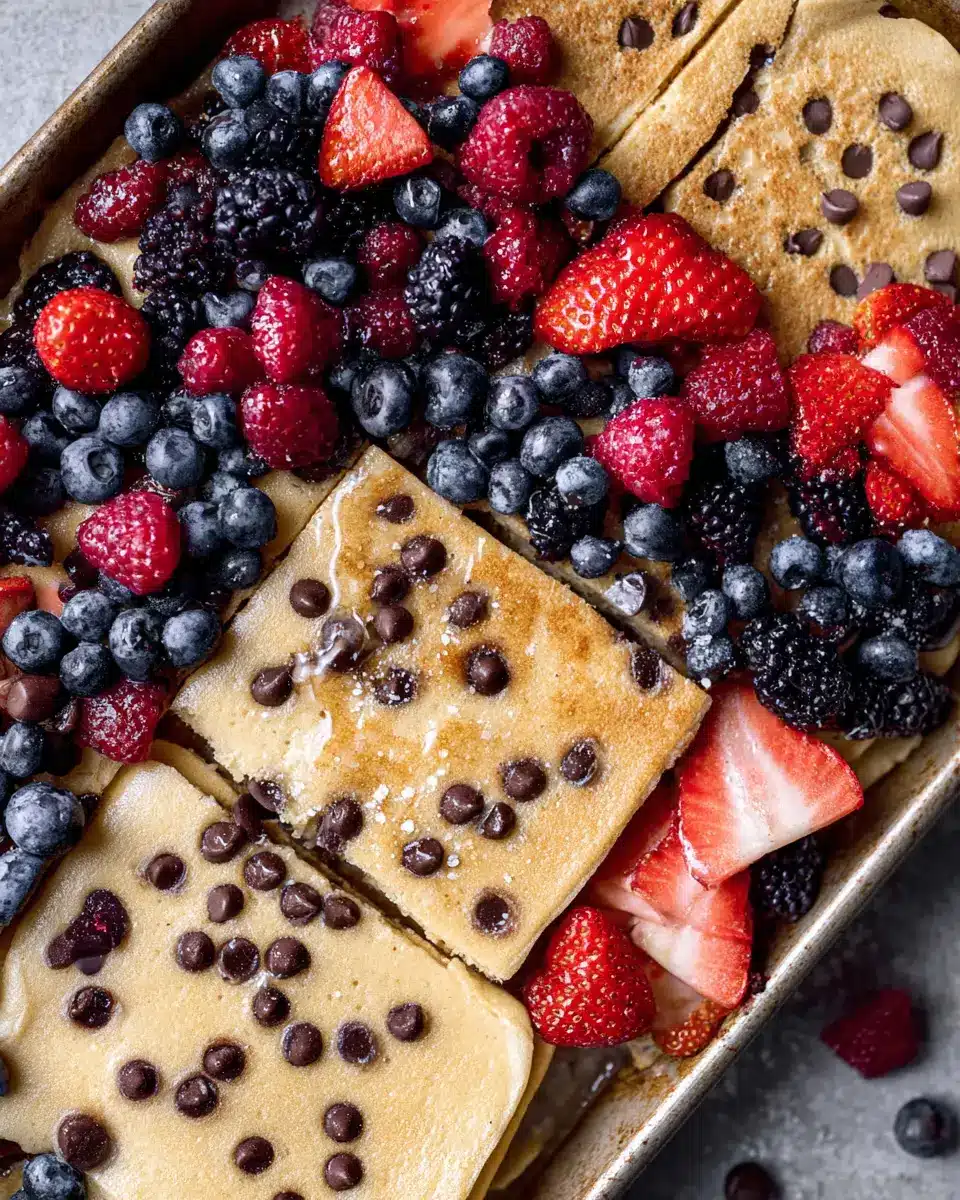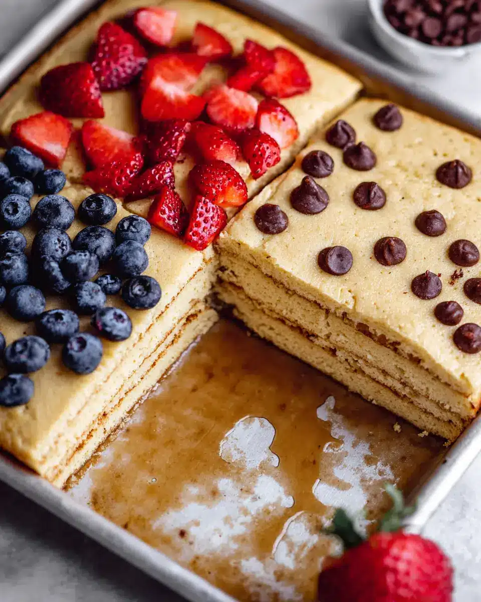 The beauty of these gluten free sheet pan pancakes is that you can mix and match according to your cravings. Why not try a combination of banana and chocolate chips for a delicious morning surprise? Enjoy experimenting!