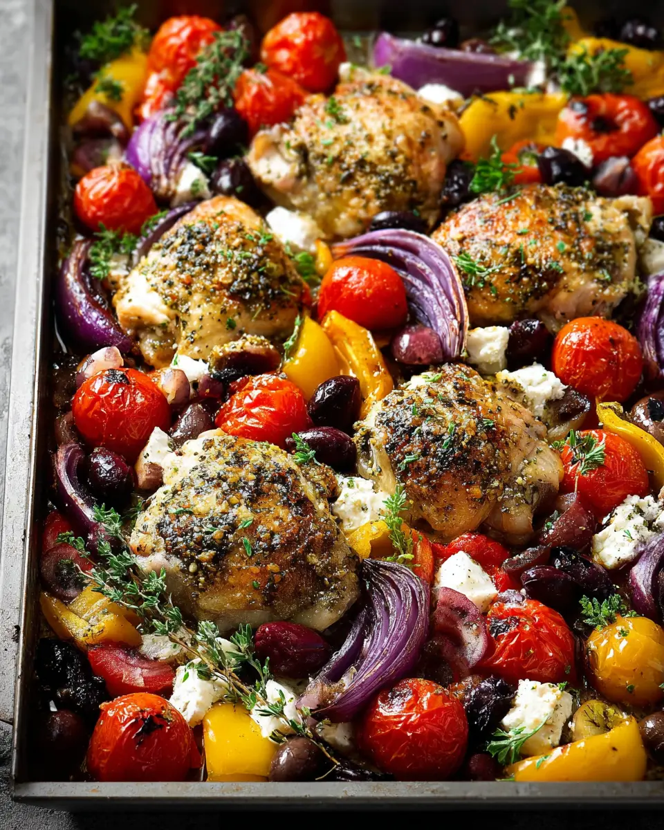 In conclusion, this Greek Sheet Pan Chicken offers a delightful and hassle-free dinner experience. With tender chicken thighs surrounded by colorful Mediterranean veggies, it's perfect for busy weeknights. Enjoy the burst of flavors and the ease of cleanup — a win-win for any home cook!