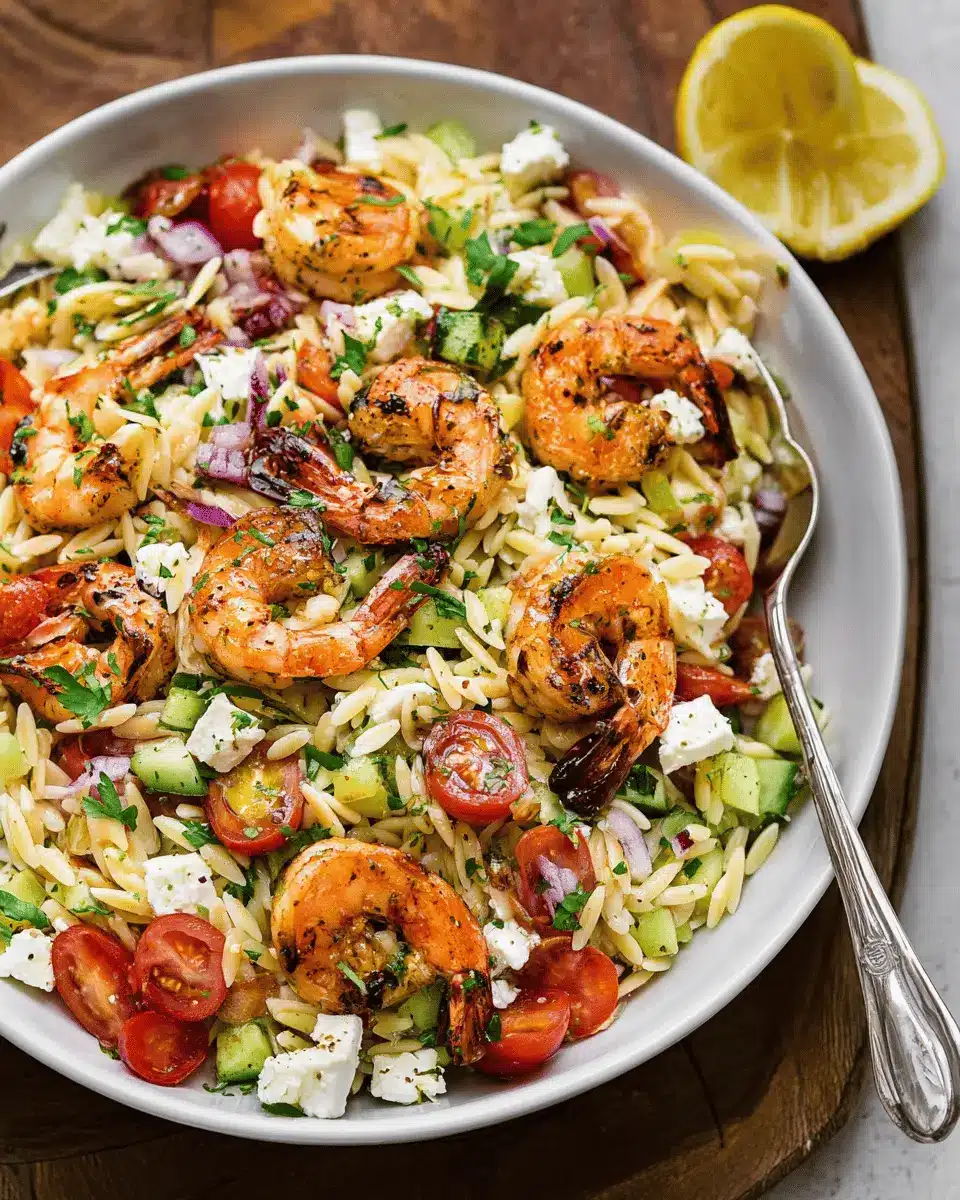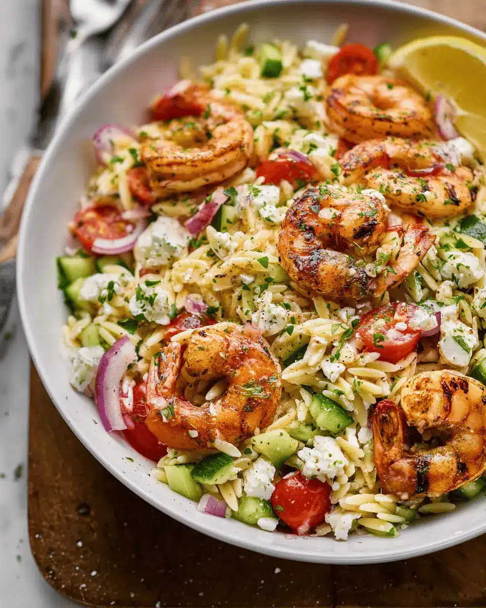 In closing, the Greek Style Grilled Shrimp Orzo Pasta Salad is not just a dish; it’s an experience filled with vibrant flavors and fresh ingredients. Perfect for gatherings or a healthy weeknight dinner, this salad is sure to impress your guests. Embrace the Mediterranean goodness!