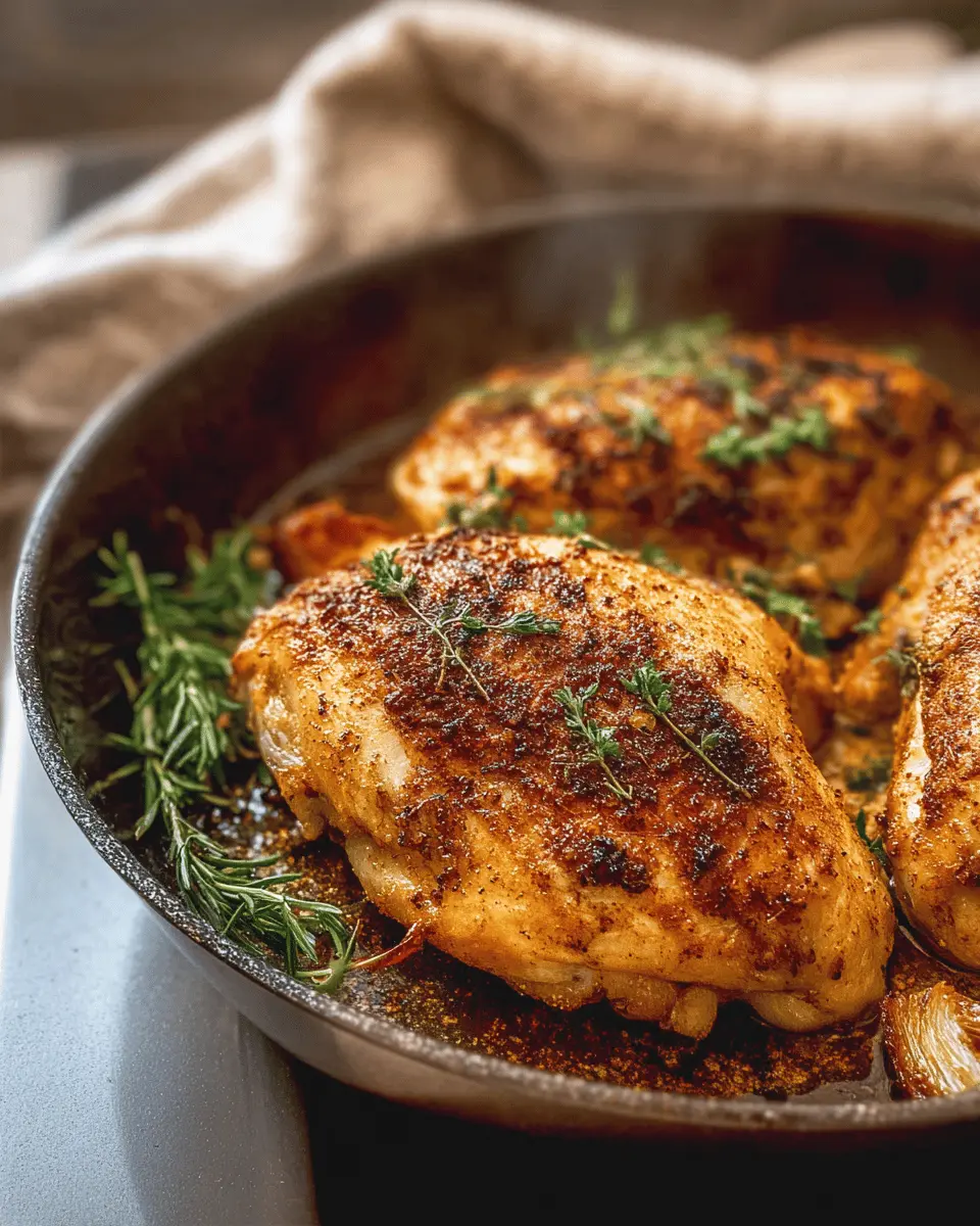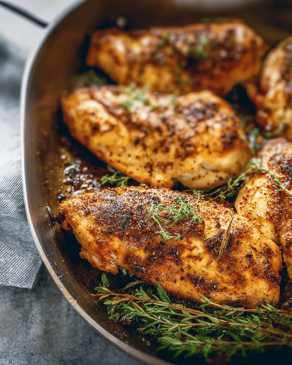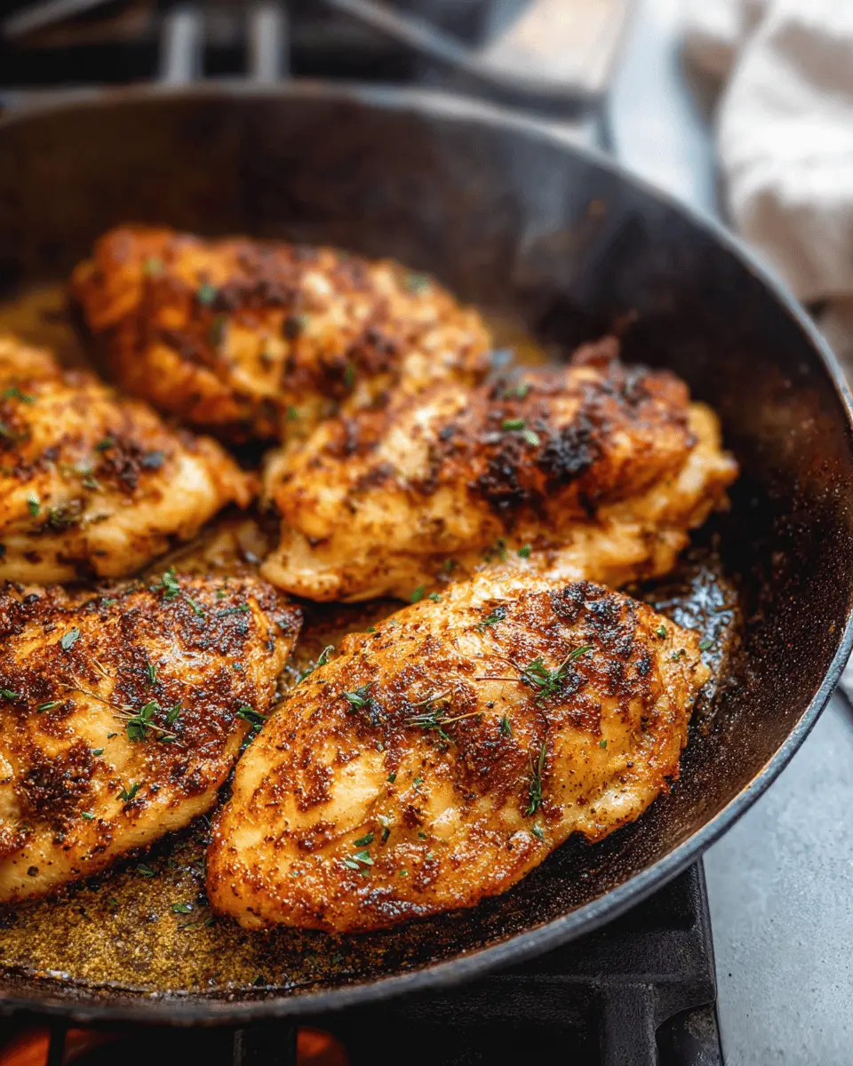 After you’ve flipped the chicken, add a tablespoon of unsalted butter to the pan. As it melts, use a spoon to baste the chicken with the buttery goodness while it cooks for another 5 to 7 minutes. This step adds richness and boosts flavor, helping your chicken reach that perfect internal temperature of 160 to 165ºF.