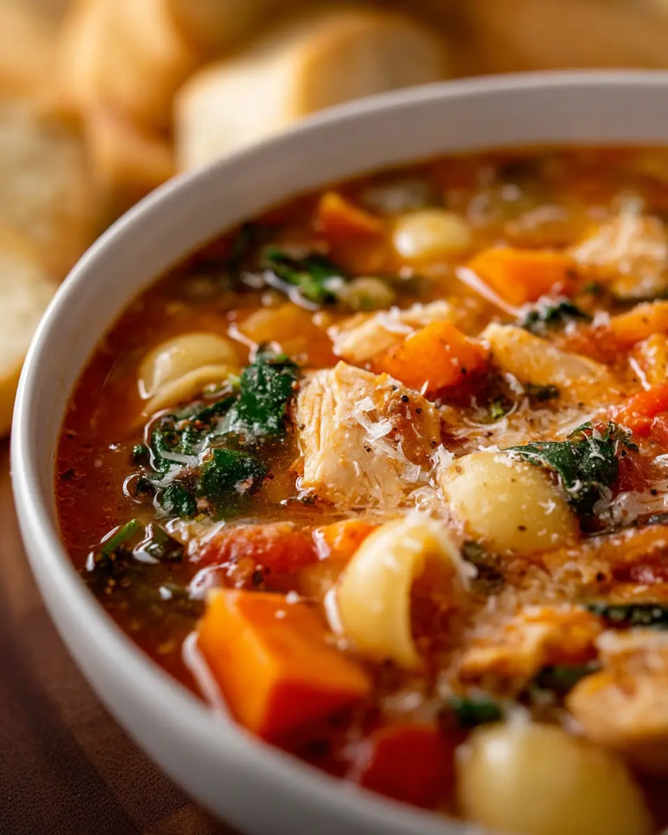 In conclusion, this Italian Chicken and Autumn Veggie Soup is a nourishing dish perfect for those chilly nights. Its combination of tender chicken, vibrant vegetables, and aromatic herbs creates a cozy meal that soothes the soul. Give it a try, and enjoy every heartwarming spoonful!