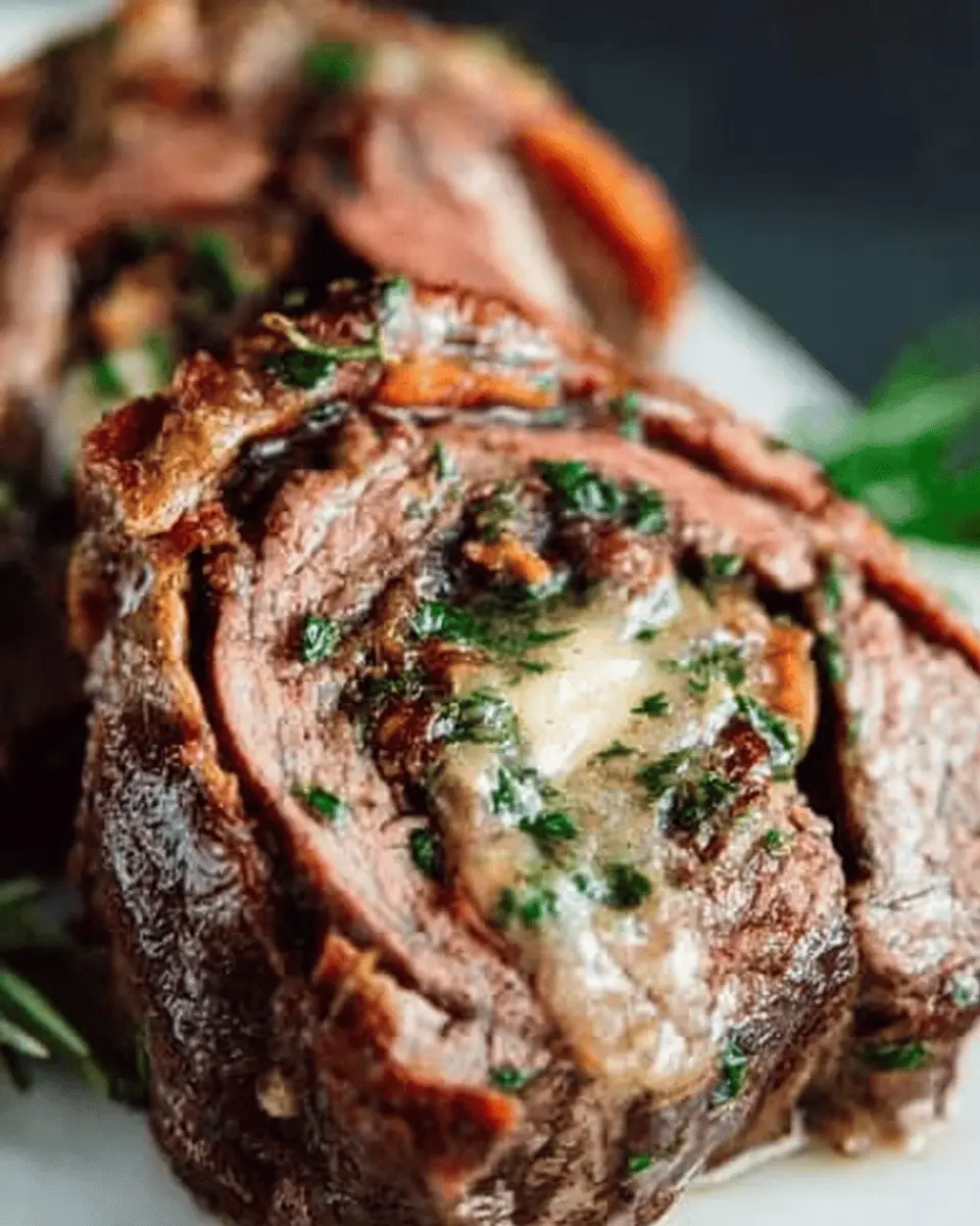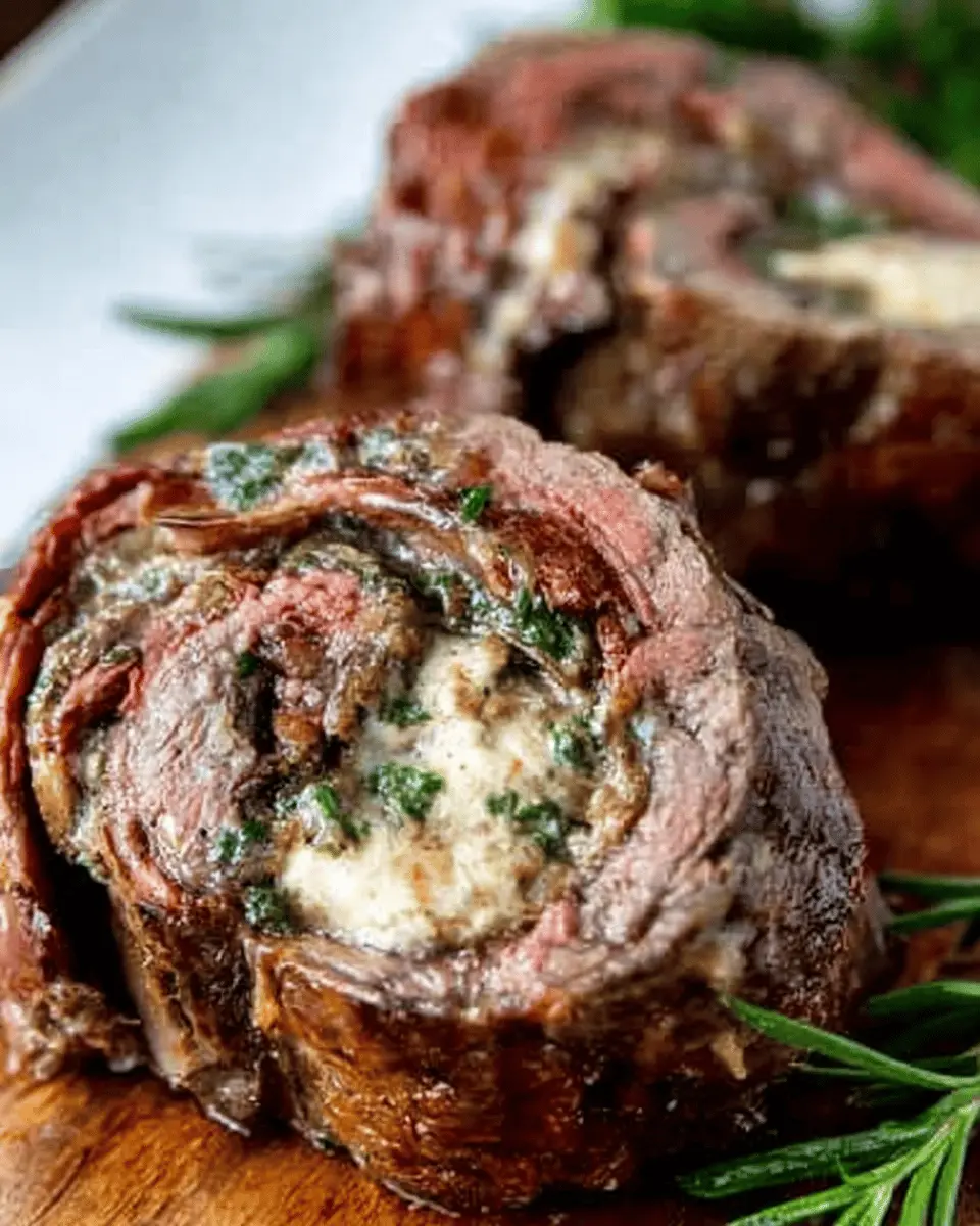 For a herby twist, try pesto-stuffed flank steak. Spread a generous layer of your favorite homemade or store-bought pesto over the steak, adding in some softened cream cheese for richness. Roll it up, secure it, and you’ll have a vibrant and flavorful dish that pairs wonderfully with a light salad.