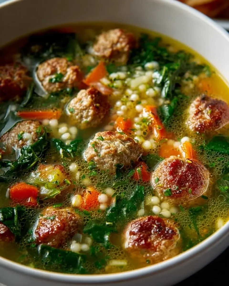 Italian Wedding Soup is a delightful dish that elegantly combines savory flavors and comforting textures. Despite its name, this soup is not typically served at weddings; instead, it beautifully symbolizes the harmonious union of ingredients. The essence of this soup lies in the tiny homemade meatballs, vibrant greens, and small pasta, all simmered together in a rich, flavorful broth.
