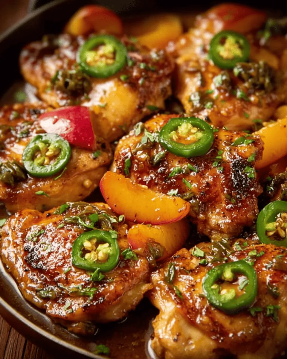 If you’re on the hunt for a vibrant and flavorful dish, look no further than Jalapeno Peach Chicken. This recipe brings together tender chicken thighs, fresh peaches, and jalapeno peppers to create a beautifully balanced meal that’s sure to make your taste buds dance. Not only is it delicious, but it's also easy to prepare, making it a perfect choice for a weeknight dinner or a weekend gathering with friends.