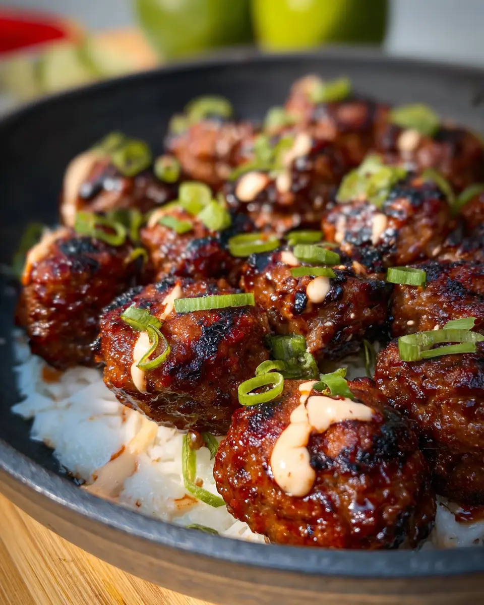 - Bowl Meal: Create a cozy rice bowl by layering meatballs, rice, and veggies, then drizzling with spicy sesame mayo.