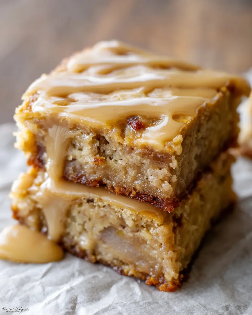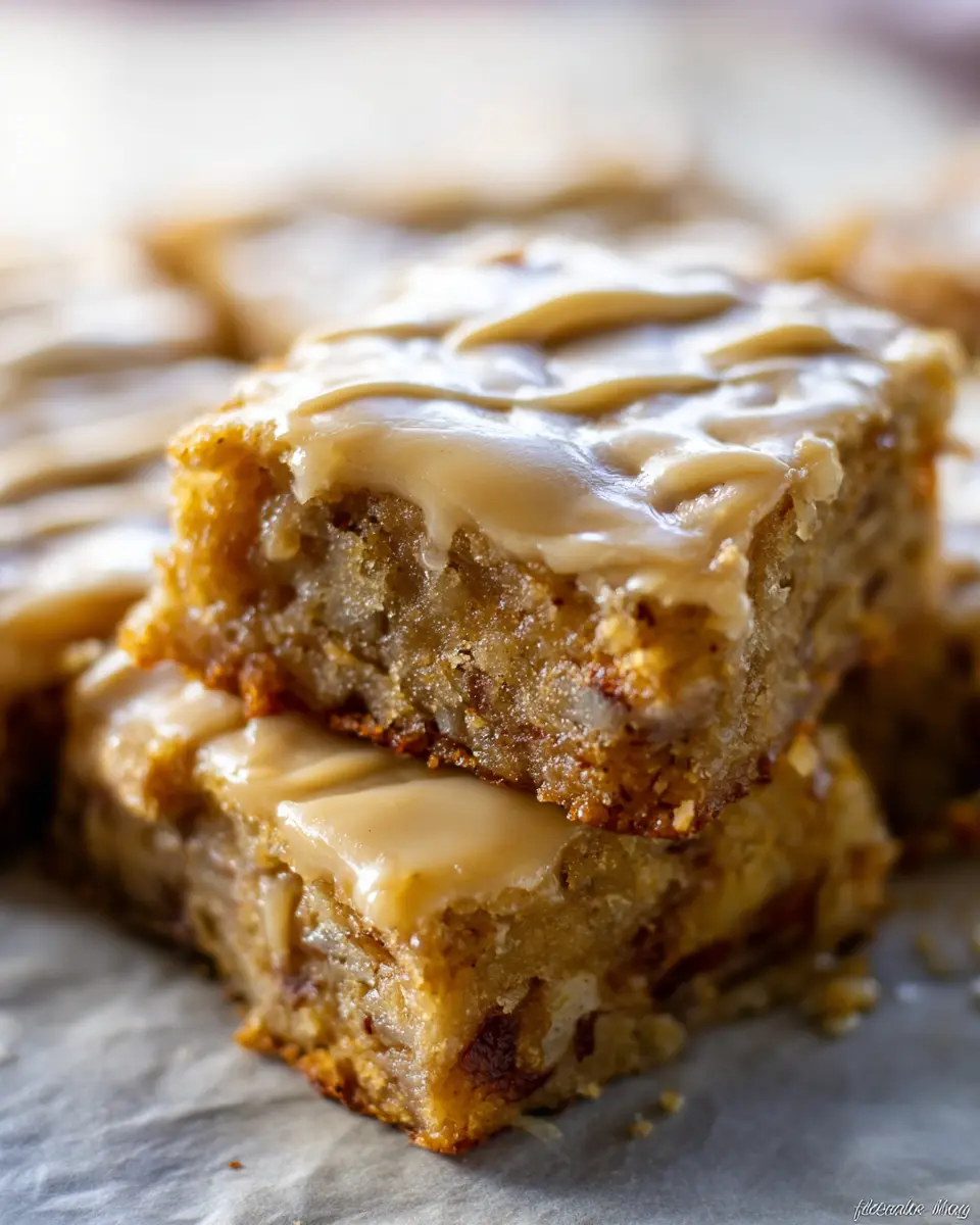 Once the blondies are out of the oven and slightly cooled (about 10 minutes), pour the maple glaze over the top. Let it set, then slice into squares and enjoy the delightful balance of sweetness from the blondies and the rich flavor of the Maple Glazed Apple Blondies.