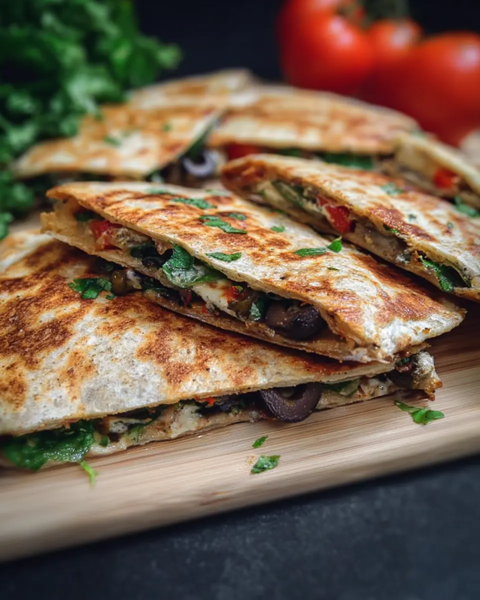 Serve your Mediterranean Quesadillas hot with a side of salsa or yogurt for dipping, and you'll have a dish that satisfies and impresses. Enjoy every bite of this delightful fusion!
