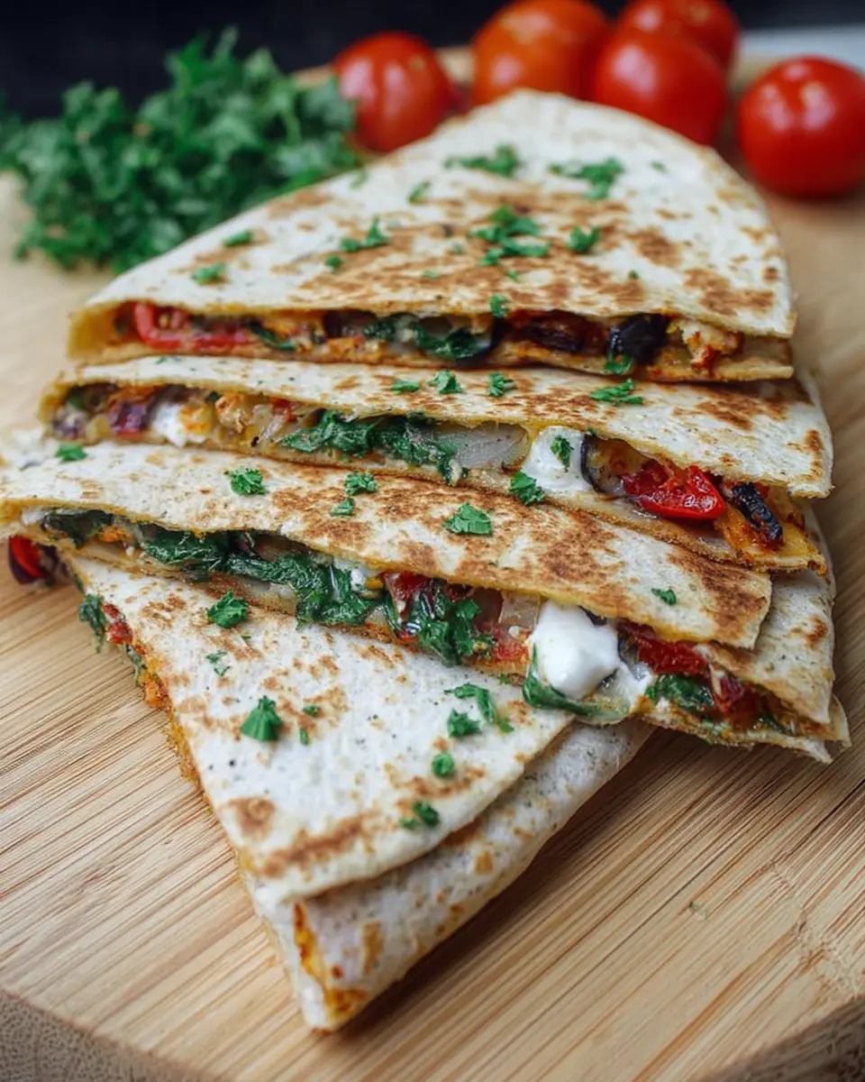 Nutrient-Dense Ingredients: Packed with ingredients like spinach, feta cheese, and olives, these quesadillas offer a satisfying blend of protein, healthy fats, and vibrant flavors.
