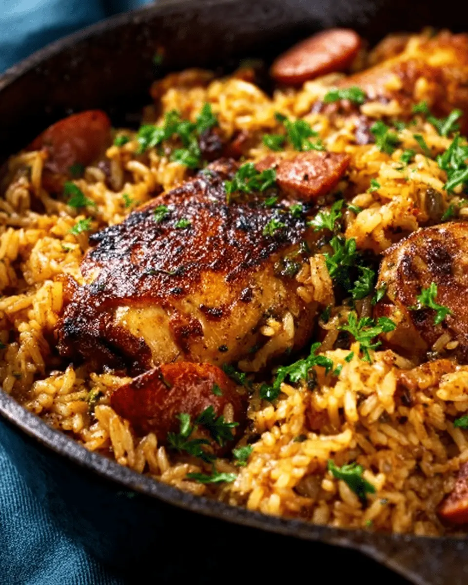 Packed with flavor, this recipe provides a robust 33 grams of protein per serving, thanks to the chicken thighs and andouille sausage. This protein content can help in muscle recovery and keep you feeling full longer.