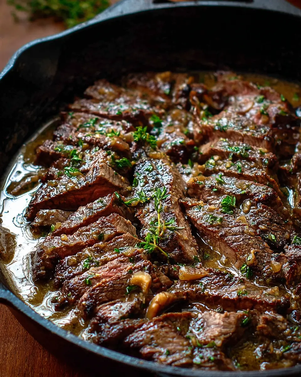 In summary, pan-seared flank steak in butter sauce is a delightful dish that effortlessly combines rich flavors with tenderness. Perfect for dinner gatherings or a cozy weeknight treat, it’s simple to prepare yet impressively delicious. Try this recipe for a meal that will leave everyone wanting more!