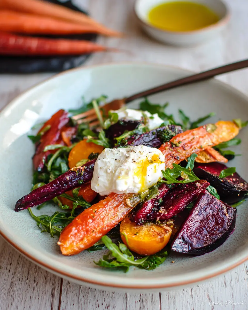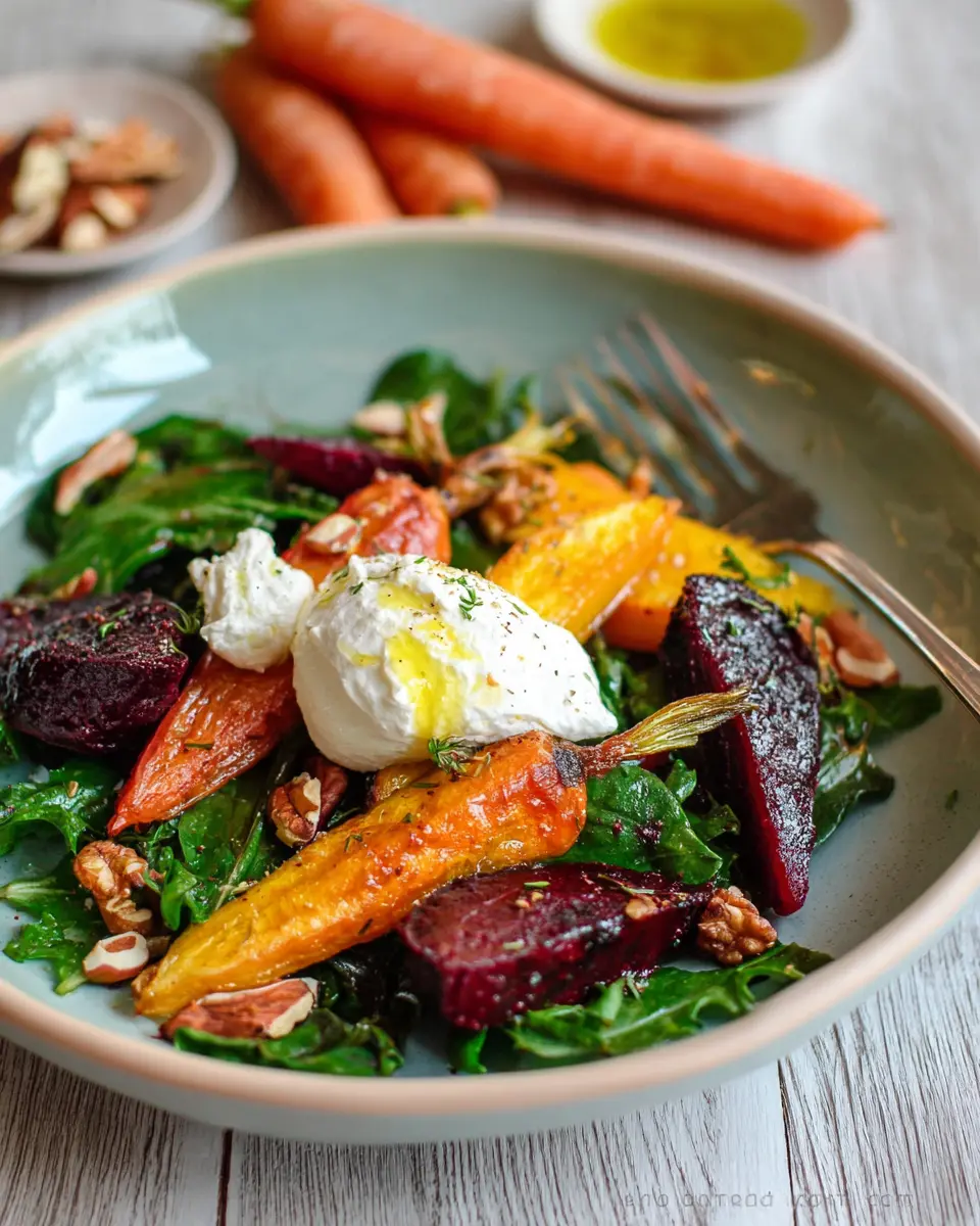 Roasted Beets and Carrots Salad with Burrata