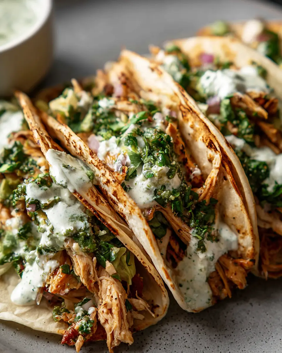In conclusion, these shredded chicken tacos with creamy chimichurri sauce are an absolute must-try. They’re quick to prepare and packed with flavor, making them perfect for a weeknight dinner or a casual gathering with friends. Elevate your taco night with this delicious recipe that everyone will love!