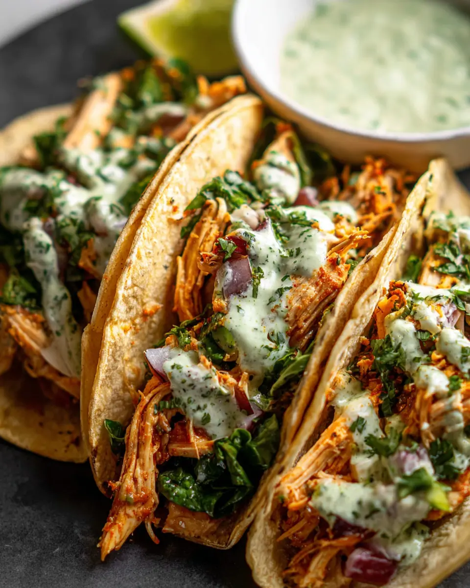Shredded Chicken Tacos with Creamy Chimichurri Sauce