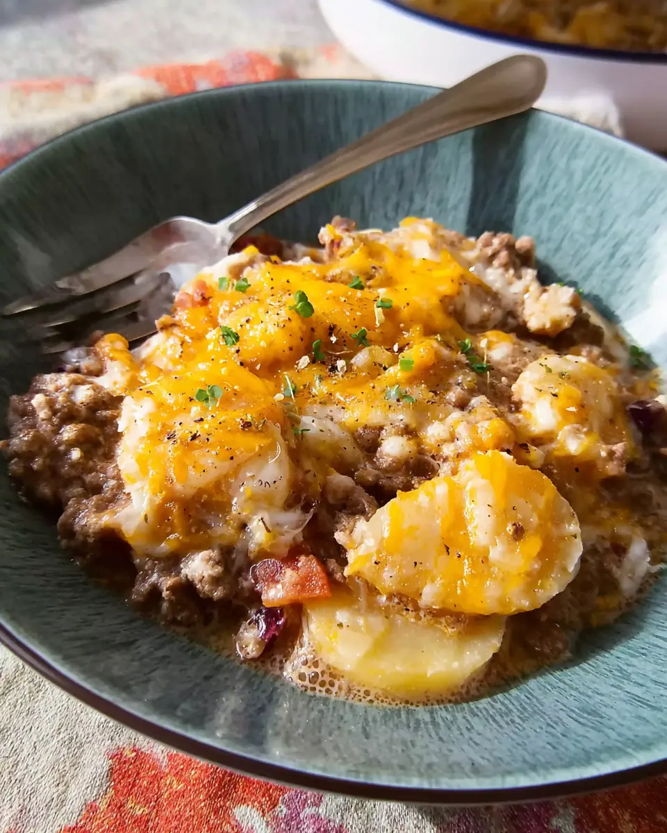 With your ingredients ready, it’s time to assemble your masterpiece! Line the bottom of your slow cooker with a layer of sliced potatoes, overlapping them slightly as needed. Lightly season with salt and pepper. Follow this with a layer of the sautéed ground beef, then pour some of your soup mixture on top, followed by a cup of shredded cheese. Repeat these layers until all ingredients are used, finishing with cheese on top for a gooey, golden crust.