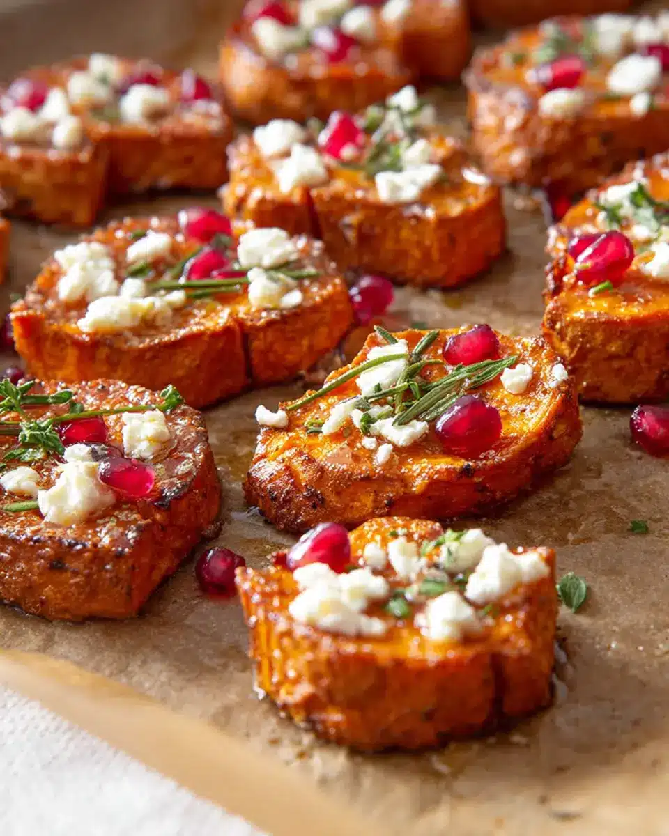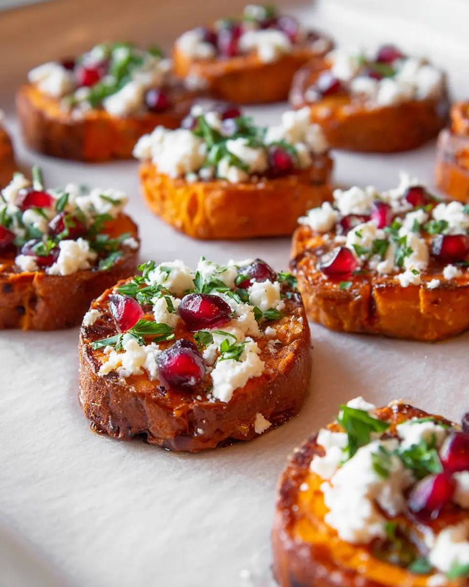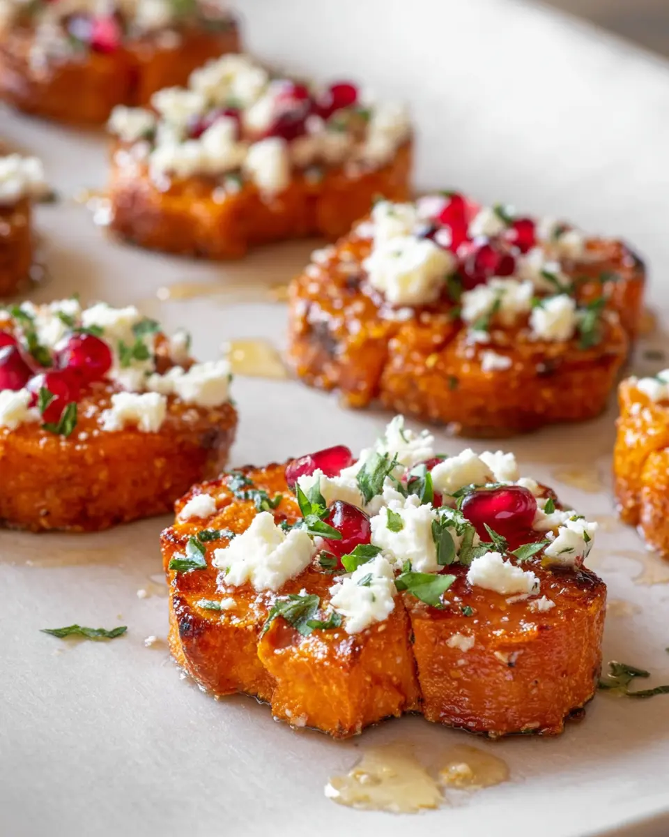 Presentation is key! Arrange your roasted sweet potato bites on a platter and drizzle them with warmed honey just before serving. Sprinkle feta crumbles, pomegranate arils, and finely chopped parsley on top for a splash of color. Have fun experimenting with your serving style, perhaps even adding a balsamic glaze for added flair. Consider pairing these bites with a refreshing sparkling water for a delightful meal experience!