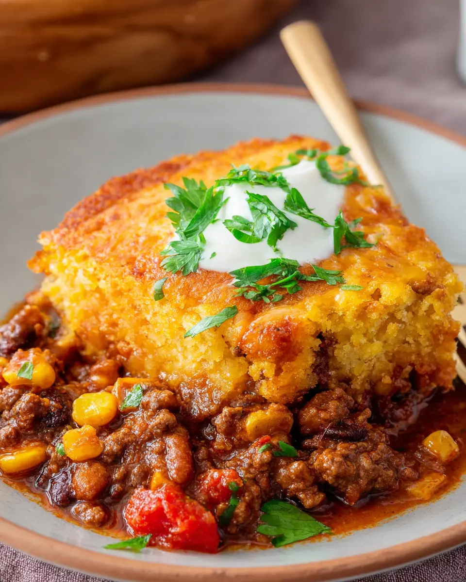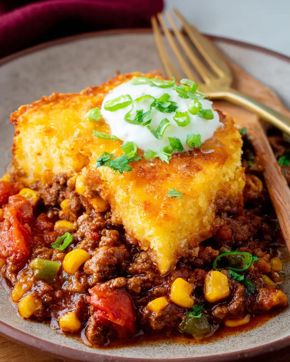 Tex-Mex Tamale Pie with Ground Beef and Cornbread Crust