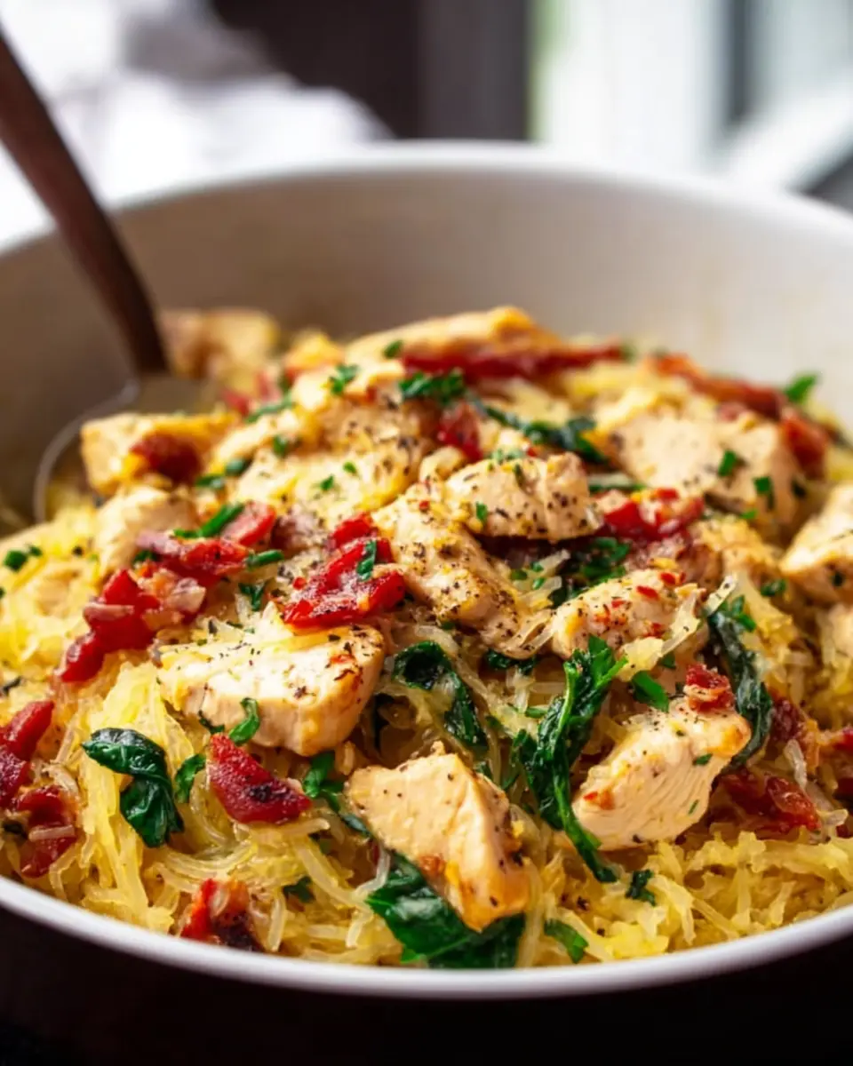 This dish is a fantastic option for those looking to maintain a healthier diet. Substituting spaghetti squash for pasta reduces carbohydrates while adding fiber. The chicken provides protein, and spinach contributes essential vitamins, like Vitamin A and iron. Overall, it's a nutritious and satisfying meal that aligns with gluten-free and low-carb lifestyles.